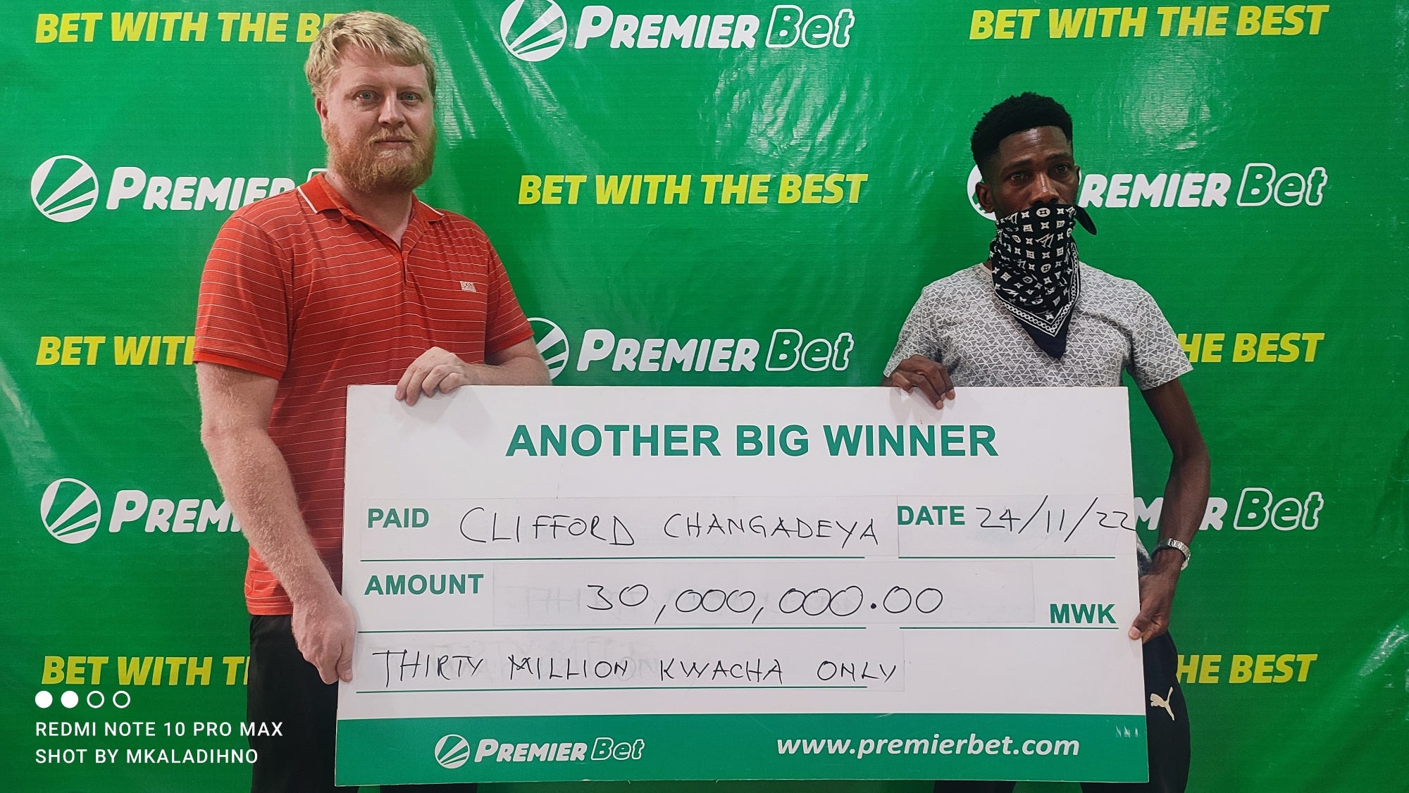 Changadeya revealed that he placed his last 4800 kwacha stake after losing about 45 thousand Kwacha the same day during the presentation of a dummy cheque at Premier Bet's offices in Lilongwe on Thursday, November 24 2022.
