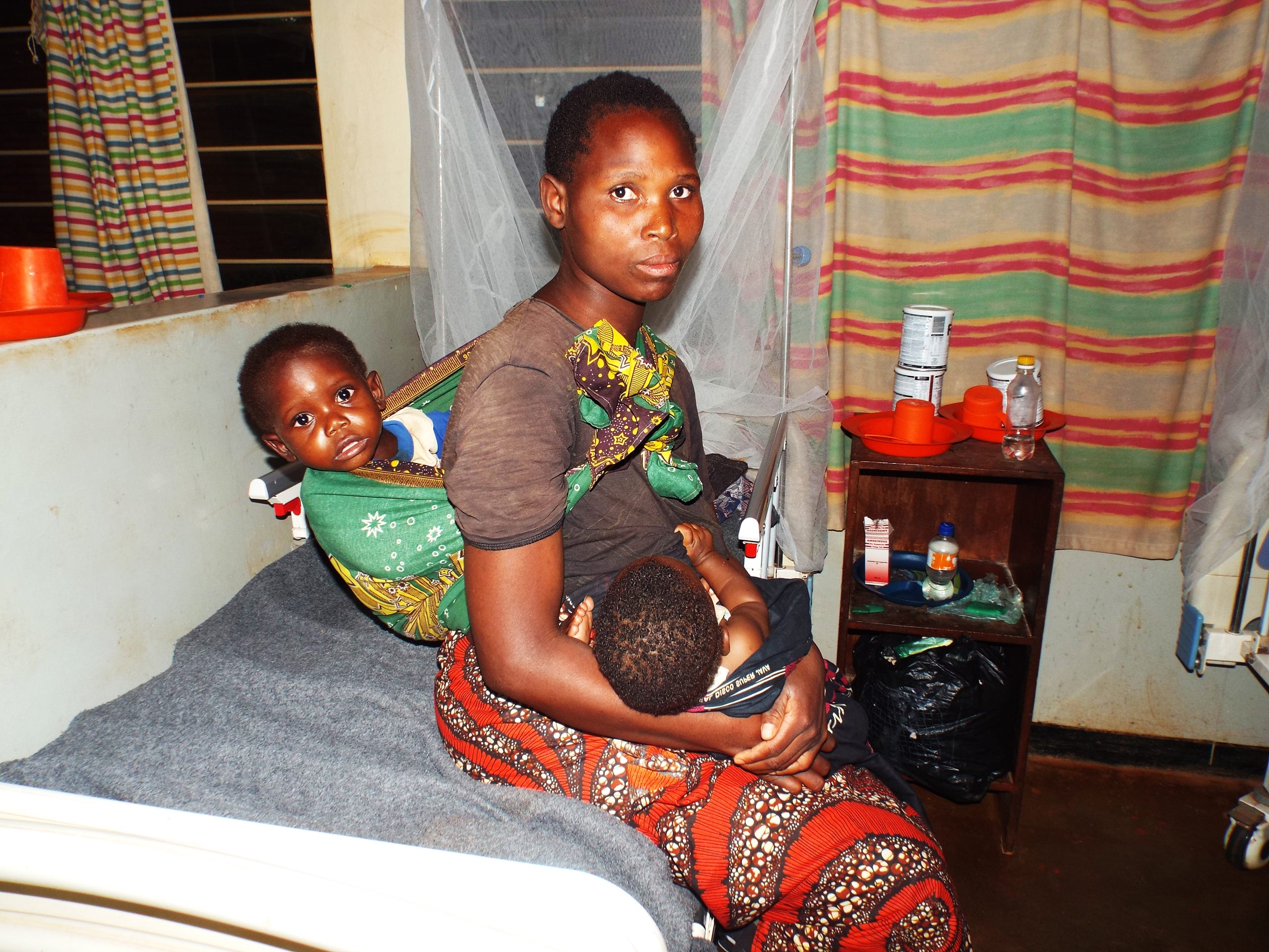 Malawi: 23-year old Flora Weluzani with two children aged 2 who is on her back and 6 months both suffering from malnutrition and admitted at the NRU. Picture by Owen Nyaka