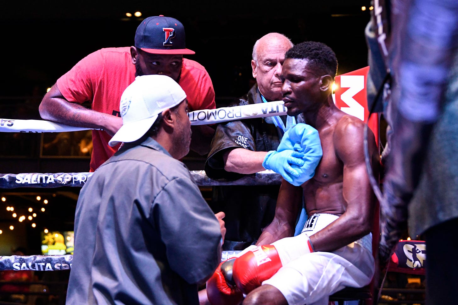 Dzanie stepped in with a clubbing right hand that dazed and dropped the Dominican for the full count from Referee Frank Garza in round two.