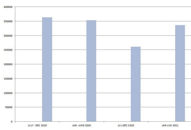 As the accompanying diagram shows, the drastic drop continued, as more and more people, especially pregnant women, continued with the hospital boycotts in light of the pandemic.