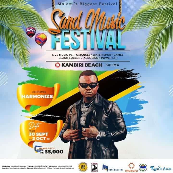 Malawi: Tanzanian music icon Harmonize has been confirmed as one of the International Headliners who will perform live at this year's Sand Music Festival, which will take place at Kambiri Beach in Salima from September 30th to October 2nd, 2022.