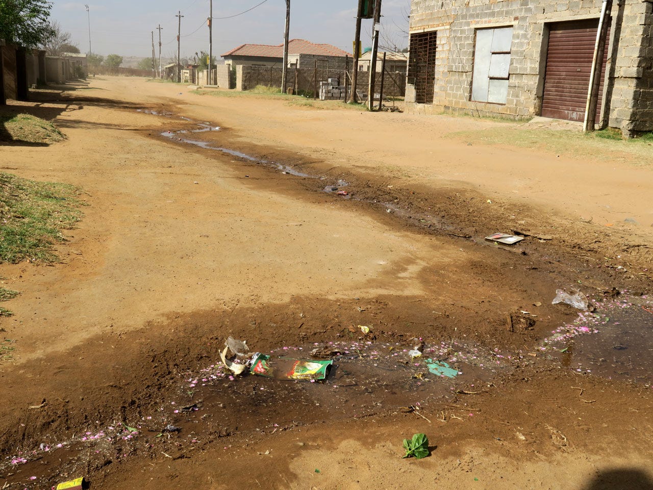 “We don’t drink this water at all; it’s bad,” Lebona says, referring to the supposedly potable water piped to their homes. “The taste is bad. There have been cases where people get a running stomach after drinking it.”