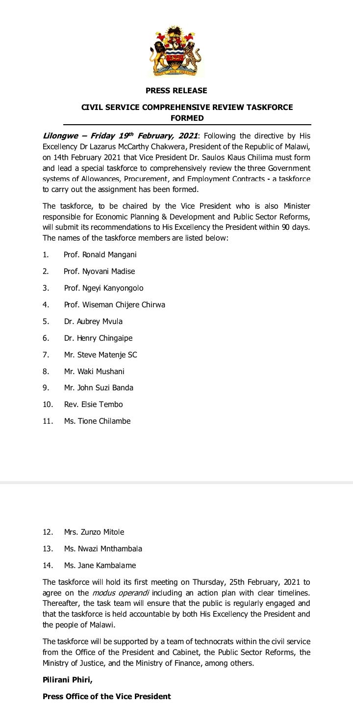 The composition of the commission chosen to work with the Vice President is made up of some of the best minds Malawi has.